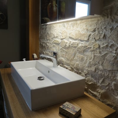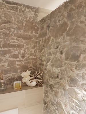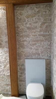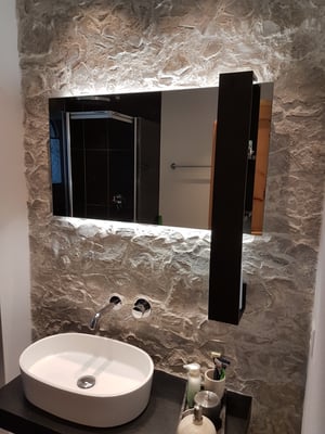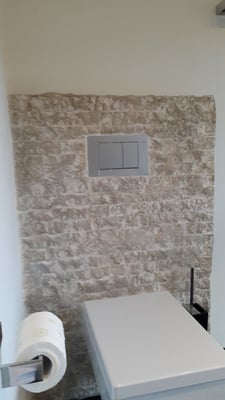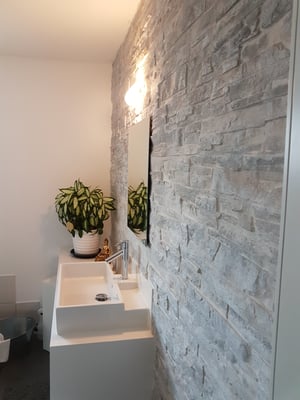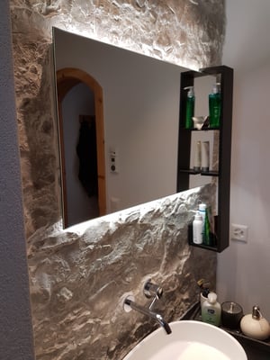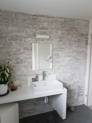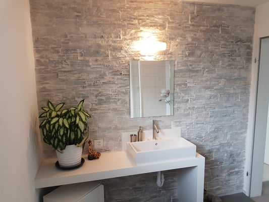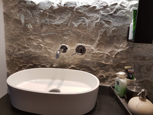 Armaturen, WC und Waschbecken werden völlig Fugenlos in den Wandbelag eingepasst. Unser Stilvolles Design in natürlicher Steinoptik bietet eine einzigartige und individuelle Alternative zu Fliessen.