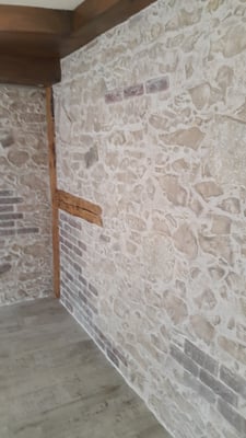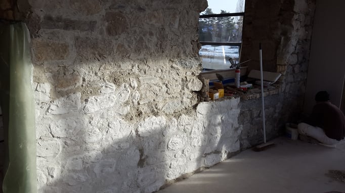 Ziel war es, die alten und guten Steine da zu belassen und die schlechten mit unseren Paneelen zu ersetzen und die Mauer als Einheit erscheinen zu lassen.