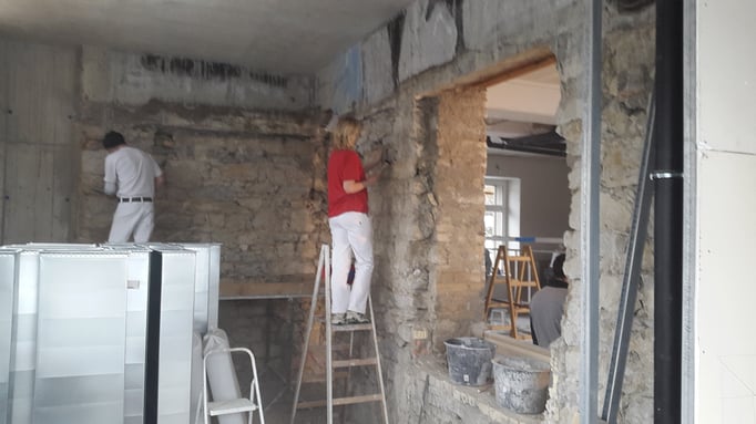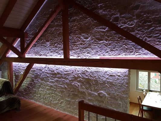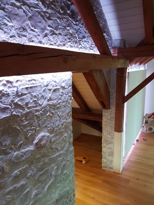 Eine spezielle herausforderung waren die krummen Wände mit teilweise grossen Löchern.