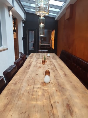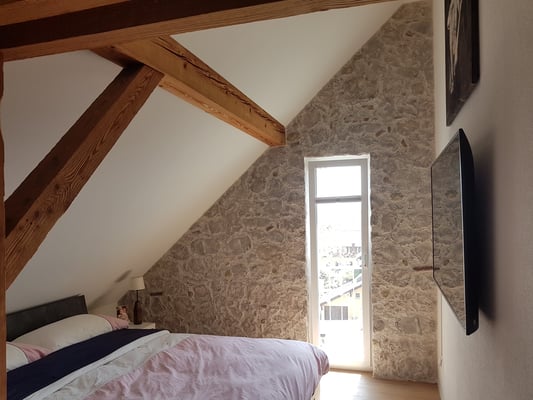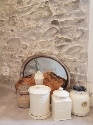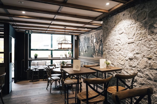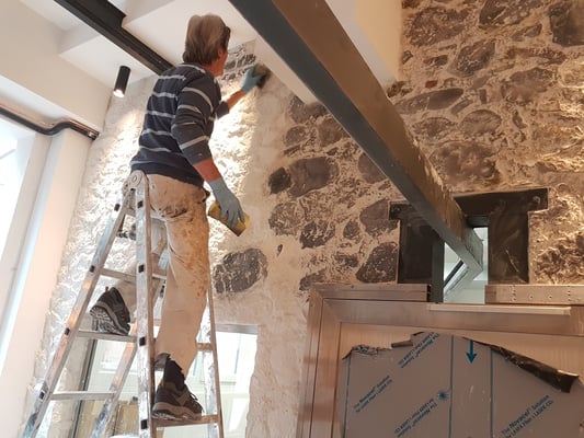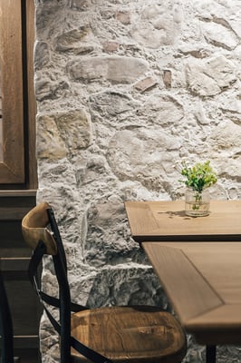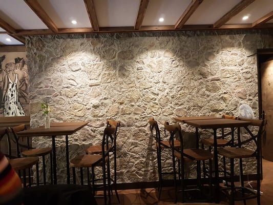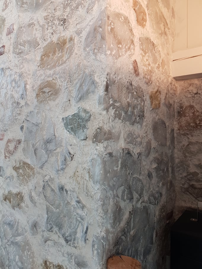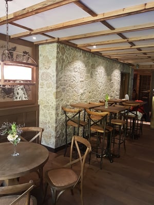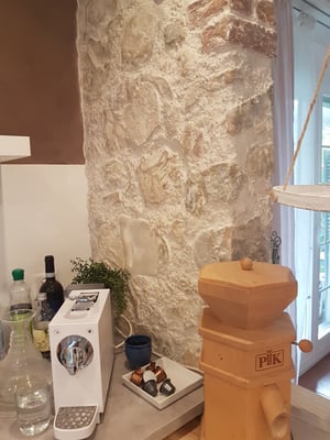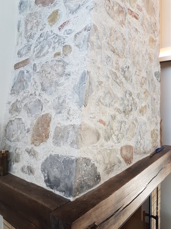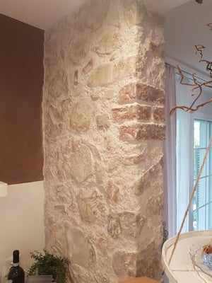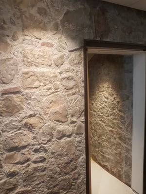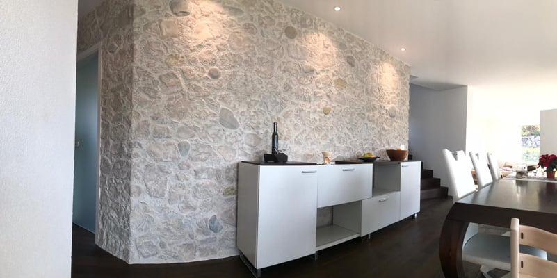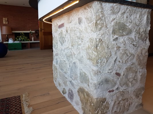 Die Säulen mit "Ascona" und die Theke mit Rundung in "Schlossmauer".