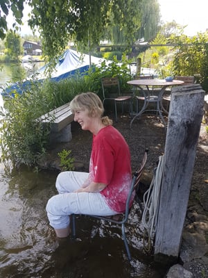 Claudia während der Baustelle am Abkühlen bei 40Grad am Schatten!